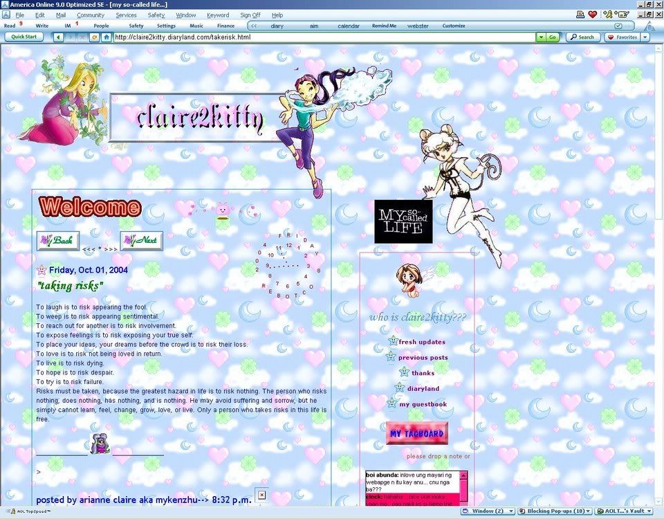 again, i don't remember... hehehe.. my very first layout in diaryland was my own creation. it was a WITCH-inspired layout, because i love the comics WITCH so much.. here's how it looked like: